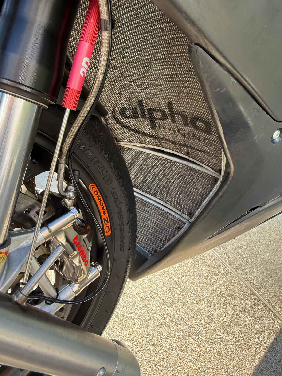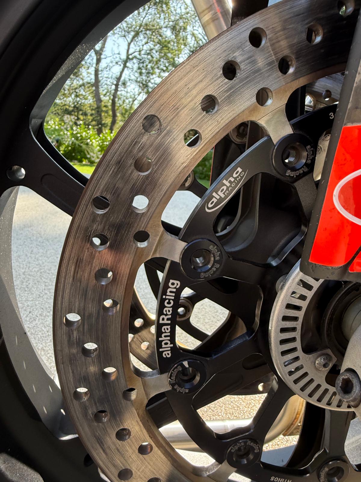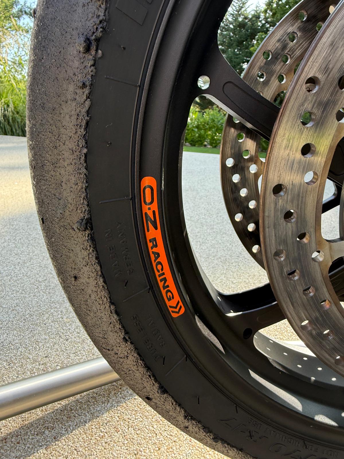 Scrubbed wets on OZ Racing wheels with Alpha discs and abs rings, ready to go