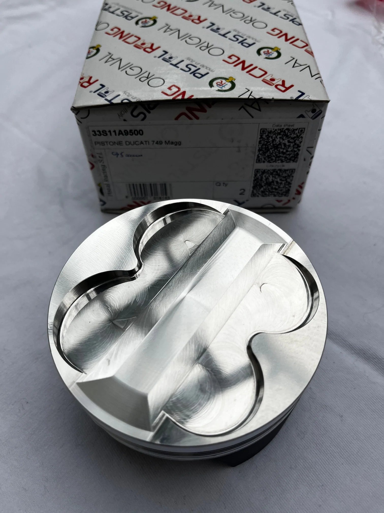 Pistal pistons are top quality. This set are for a Ducati 749; the 58.8 stroke version. Your standard cylinders will need to be bored and replated; they will take the capacity out to 833cc. The kit include two pistons , two sets of rings, two piston Pins and the relevant circlips.