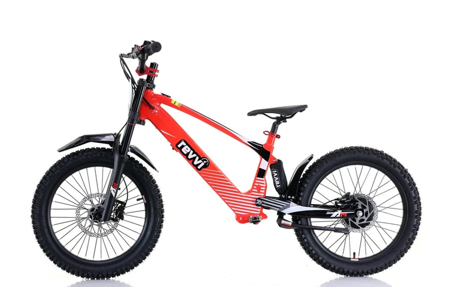 A super light electric-powered motor bike that has been specifically designed for 8-12 year old riders, Weighing in at only 20kg's. The bike can be used on the slow speed setting (9.5mph) whilst the rider hone's there skills. Once they gain confidence they can progress onto the medium (13.5mph) and fast (20mph) speed settings. The bike features foldable MX style foot pegs and a full grip twist throttle. The bike also features Off road rubber air filled tyres suitable for various ground types & a hub motor that delivers reliable performance. Mudguards/rear shock guard fitted to the bikes as standard. The front and rear suspension offer's comfort while riding. Hydraulic front and rear disc brakes for great stopping performance.